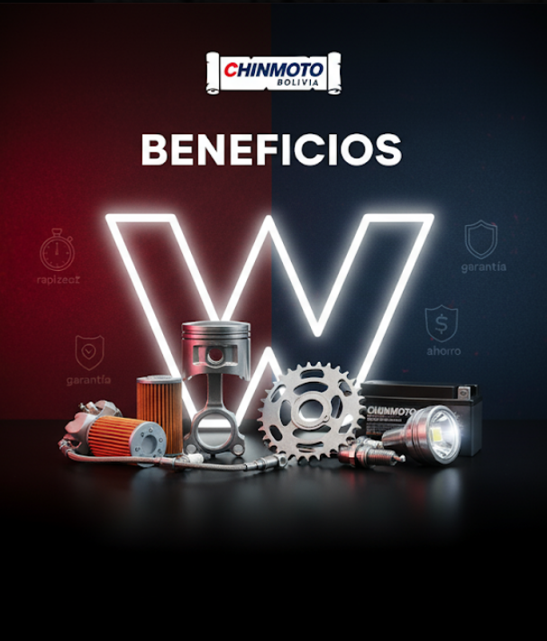 Asesor por WhatsAppTe ayudamos a elegir el repuesto correcto Envío a Todo BoliviaEntrega rápida y segura a nivel nacional. Sellado y CertificadoEmpaque original, código de lote verificable. Repuestos OriginalesPiezas 100% originales Recién Llegado Ver Todo CARGADOR DE BATERIA HAOJUE NK-150 77.00Bs. Eléctrico & LucesAgregar al carrito PISTON Y ANILLA HAOJUE EX-125 0.25 70.00Bs. PISTON ANILLAAgregar al carrito GOMA DE CATALINA WAVE-2017 8.50Bs. GOMA DE CATALINAAgregar al carrito CORTA CADENA 45.00Bs. MantenimientoAgregar al carrito Eléctrico & Luces Mantenimiento Carrocería & Accesorios BENEFICIOS CHIN MOTO Repuestos originales con respaldo de fábrica y entrega en todo Bolivia.Repuestos Originales Haojue · garantía oficialEnvío a Todo Bolivia · rápido y seguroAsesor Técnico · te ayudamos por WhatsApp